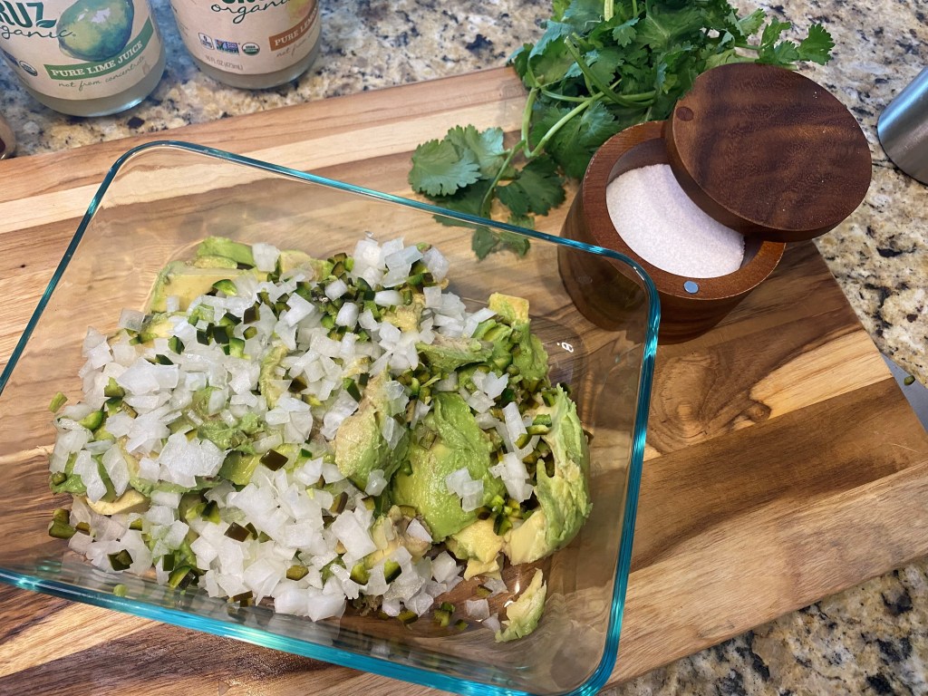 So, with the return of game days, I thought I would whip up and show you my Game Day Guacamole that has a surprise ingredient of LEMON juice that sets it above the rest. Trust me, it’s game changer. HA!